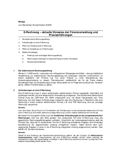 Juni 2025 – Beilage zum Mandanten-Rundschreiben „E-Rechnung – aktuelle Hinweise der Finanzverwaltung und Praxiserfahrungen“